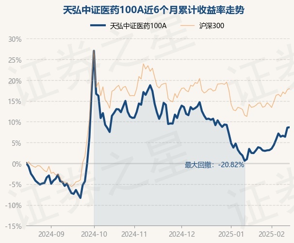 证券之星消息,2月17日,天弘中证医药100A最新单位净值为0.7555元,累计净值为0.7555元,较前一交易日上涨0.08%。历史数据显示该基金近1个月上涨5.4%,近3个月下跌3.19%,近6个月上涨8.66%,近1年下跌1.37%。该基金近6个月的累计收益率走势如下图: