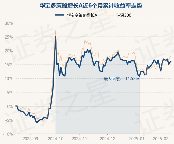 证券之星消息,2月17日,华宝多策略增长A最新单位净值为0.416元,累计净值为4.7198元,较前一交易日上涨0.17%。历史数据显示该基金近1个月上涨1.04%,近3个月下跌0.02%,近6个月上涨16.07%,近1年上涨8.33%。该基金近6个月的累计收益率走势如下图: