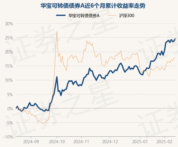 证券之星消息,2月17日,华宝可转债债券A最新单位净值为1.6686元,累计净值为1.6686元,较前一交易日上涨0.68%。历史数据显示该基金近1个月上涨6.41%,近3个月上涨12.43%,近6个月上涨24.59%,近1年上涨19.03%。该基金近6个月的累计收益率走势如下图: