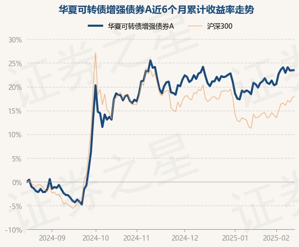 证券之星消息,2月17日,华夏可转债增强债券A最新单位净值为1.3455元,累计净值为1.3455元,较前一交易日上涨0.02%。历史数据显示该基金近1个月上涨2.25%,近3个月上涨3.36%,近6个月上涨23.49%,近1年上涨19.01%。该基金近6个月的累计收益率走势如下图: