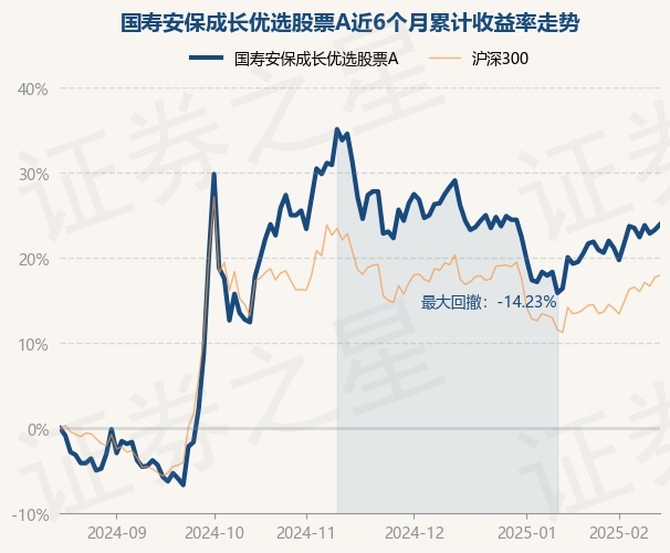 证券之星消息,2月17日,国寿安保成长优选股票A最新单位净值为1.154元,累计净值为1.56元,较前一交易日上涨0.52%。历史数据显示该基金近1个月上涨2.85%,近3个月下跌2.53%,近6个月上涨23.95%,近1年上涨18.97%。该基金近6个月的累计收益率走势如下图: