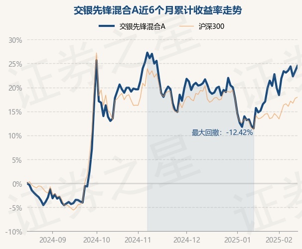 证券之星消息,2月17日,交银先锋混合A最新单位净值为1.9122元,累计净值为2.4422元,较前一交易日上涨0.9%。历史数据显示该基金近1个月上涨6.87%,近3个月上涨4.76%,近6个月上涨24.5%,近1年上涨17.94%。该基金近6个月的累计收益率走势如下图: