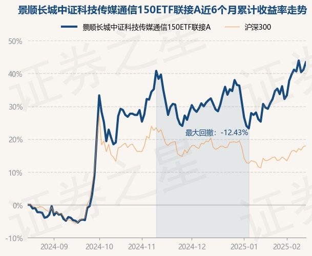 证券之星消息,2月17日,景顺长城中证科技传媒通信150ETF联接A最新单位净值为0.77元,累计净值为0.77元,较前一交易日上涨1.58%。历史数据显示该基金近1个月上涨9.53%,近3个月上涨9.22%,近6个月上涨43.39%,近1年上涨47.79%。该基金近6个月的累计收益率走势如下图: