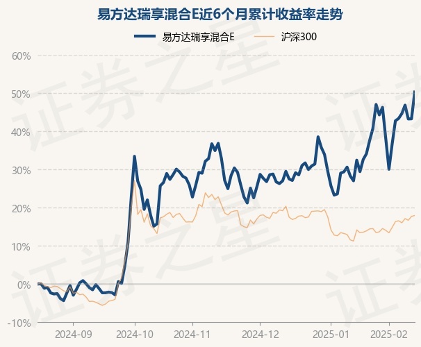 证券之星消息,2月17日,易方达瑞享混合E最新单位净值为2.8333元,累计净值为2.8333元,较前一交易日上涨4.89%。历史数据显示该基金近1个月上涨12.07%,近3个月上涨18.22%,近6个月上涨50.31%,近1年上涨35.5%。该基金近6个月的累计收益率走势如下图: