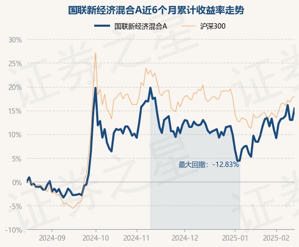 证券之星消息,2月17日,国联新经济混合A最新单位净值为3.178元,累计净值为3.756元,较前一交易日上涨2.15%。历史数据显示该基金近1个月上涨5.27%,近3个月上涨3.55%,近6个月上涨15.44%,近1年上涨12.18%。该基金近6个月的累计收益率走势如下图: