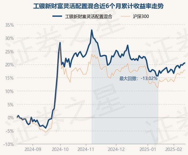 证券之星消息,2月17日,工银新财富灵活配置混合最新单位净值为2.104元,累计净值为2.104元,较前一交易日上涨0.19%。历史数据显示该基金近1个月上涨2.24%,近3个月下跌2.05%,近6个月上涨20.57%,近1年上涨14.85%。该基金近6个月的累计收益率走势如下图: