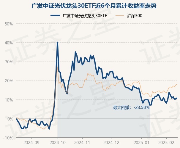 证券之星消息,2月17日,广发中证光伏龙头30ETF最新单位净值为0.4834元,累计净值为0.4834元,较前一交易日上涨0.44%。历史数据显示该基金近1个月下跌0.72%,近3个月下跌11.92%,近6个月上涨10.85%,近1年下跌9.15%。该基金近6个月的累计收益率走势如下图: