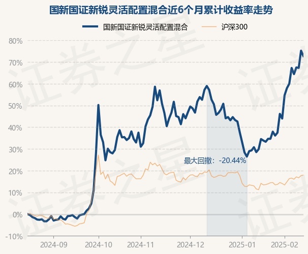 证券之星消息,2月17日,国新国证新锐灵活配置混合最新单位净值为1.52元,累计净值为1.52元,较前一交易日下跌1.43%。历史数据显示该基金近1个月上涨28.27%,近3个月上涨17.83%,近6个月上涨72.73%,近1年上涨54.94%。该基金近6个月的累计收益率走势如下图: