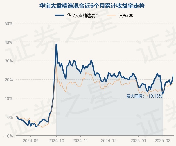 证券之星消息,2月17日,华宝大盘精选混合最新单位净值为2.4012元,累计净值为2.908元,较前一交易日上涨2.73%。历史数据显示该基金近1个月上涨3.78%,近3个月下跌1.7%,近6个月上涨22.4%,近1年上涨33.24%。该基金近6个月的累计收益率走势如下图: