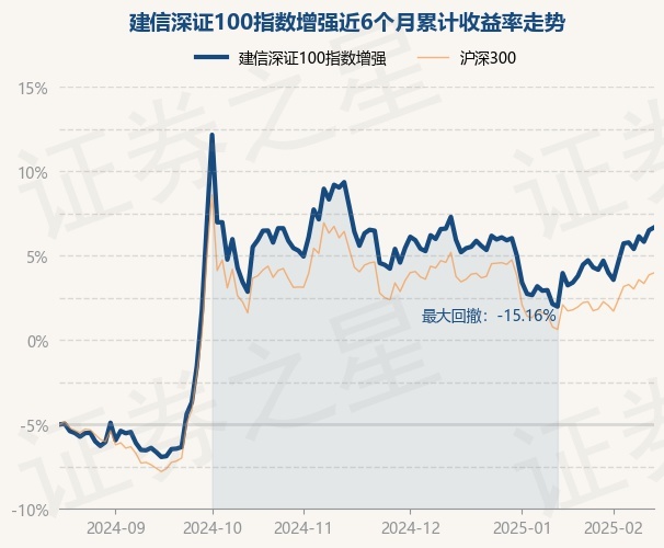 证券之星消息,2月17日,建信深证100指数增强最新单位净值为2.1413元,累计净值为2.1413元,较前一交易日上涨0.27%。历史数据显示该基金近1个月上涨4.9%,近3个月上涨0.41%,近6个月上涨23.35%,近1年上涨20.61%。该基金近6个月的累计收益率走势如下图:
