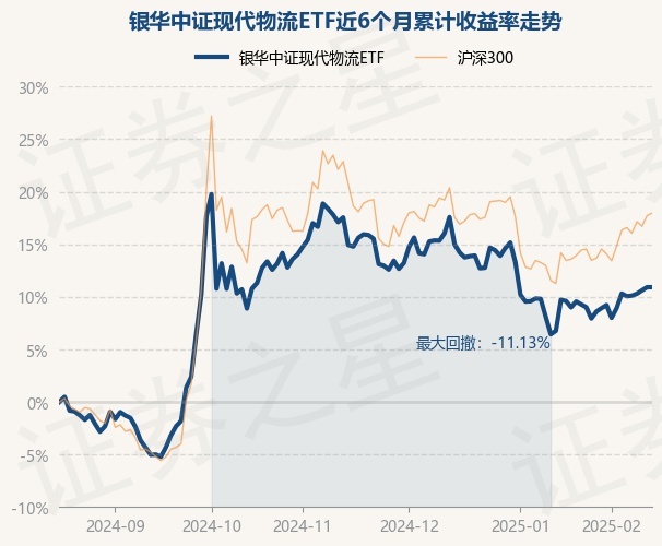 证券之星消息,2月17日,银华中证现代物流ETF最新单位净值为0.8835元,累计净值为0.8835元,较前一交易日上涨0.0%。历史数据显示该基金近1个月上涨1.72%,近3个月下跌2.92%,近6个月上涨11.43%,近1年上涨16.71%。该基金近6个月的累计收益率走势如下图: