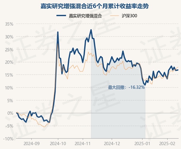 证券之星消息,2月17日,嘉实研究增强混合最新单位净值为1.312元,累计净值为1.312元,较前一交易日上涨0.08%。历史数据显示该基金近1个月上涨0.85%,近3个月下跌3.1%,近6个月上涨16.83%,近1年上涨17.46%。该基金近6个月的累计收益率走势如下图: