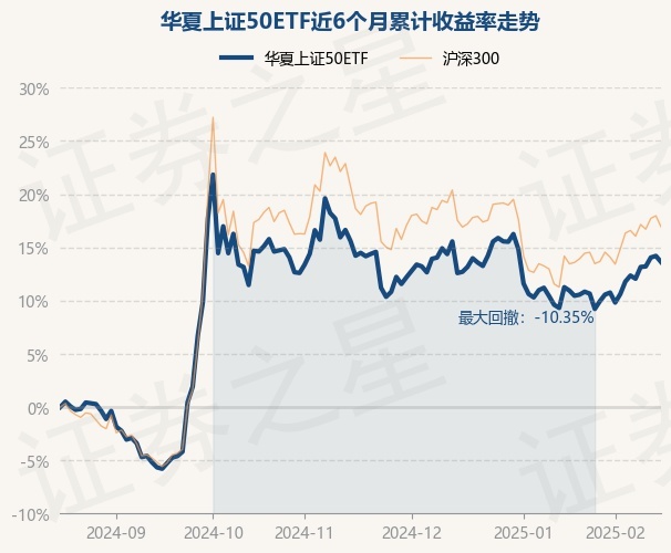 证券之星消息,2月17日,华夏上证50ETF最新单位净值为2.7239元,累计净值为4.0735元,较前一交易日上涨0.13%。历史数据显示该基金近1个月上涨3.29%,近3个月下跌0.03%,近6个月上涨14.18%,近1年上涨16.39%。该基金近6个月的累计收益率走势如下图: