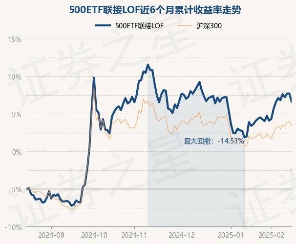 证券之星消息,2月17日,500ETF联接LOF最新单位净值为1.6618元,累计净值为1.7618元,较前一交易日上涨0.01%。历史数据显示该基金近1个月上涨6.18%,近3个月上涨0.39%,近6个月上涨25.42%,近1年上涨16.06%。该基金近6个月的累计收益率走势如下图: