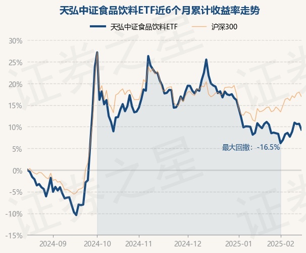 证券之星消息,2月17日,天弘中证食品饮料ETF最新单位净值为0.6932元,累计净值为0.6932元,较前一交易日上涨0.09%。历史数据显示该基金近1个月上涨0.01%,近3个月下跌7.41%,近6个月上涨10.68%,近1年下跌2.72%。该基金近6个月的累计收益率走势如下图:
