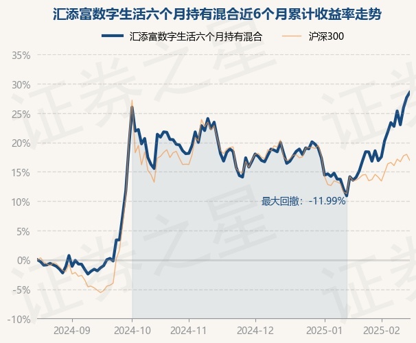 证券之星消息,2月17日,汇添富数字生活六个月持有混合最新单位净值为0.6945元,累计净值为0.6945元,较前一交易日上涨1.39%。历史数据显示该基金近1个月上涨10.84%,近3个月上涨8.08%,近6个月上涨27.64%,近1年上涨29.98%。该基金近6个月的累计收益率走势如下图:
