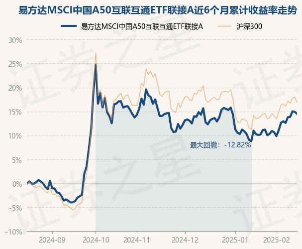 易方达MSCI中国A50互联互通ETF联接A为指数型-股票基金,根据最新一期基金季报显示,该基金资产配置:无股票类资产,债券占净值比2.25%,现金占净值比2.97%。基金十大重仓股如下: