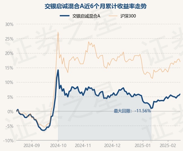 证券之星消息,2月18日,交银启诚混合A最新单位净值为1.0903元,累计净值为1.0903元,较前一交易日上涨0.4%。历史数据显示该基金近1个月上涨1.97%,近3个月上涨0.57%,近6个月上涨5.86%,近1年上涨8.8%。该基金近6个月的累计收益率走势如下图: