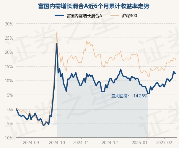 证券之星消息,2月18日,富国内需增长混合A最新单位净值为1.2747元,累计净值为1.2747元,较前一交易日上涨0.0%。历史数据显示该基金近1个月上涨3.81%,近3个月上涨3.81%,近6个月上涨12.23%,近1年上涨5.33%。该基金近6个月的累计收益率走势如下图: