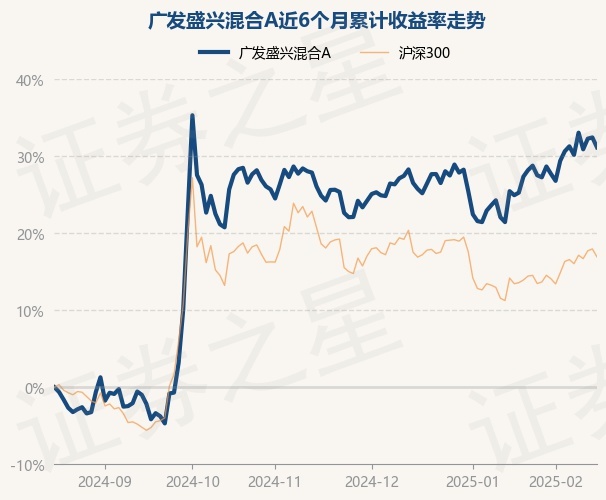 证券之星消息,2月18日,广发盛兴混合A最新单位净值为0.8303元,累计净值为0.8303元,较前一交易日下跌0.97%。历史数据显示该基金近1个月上涨2.99%,近3个月上涨5.57%,近6个月上涨31.17%,近1年上涨30.76%。该基金近6个月的累计收益率走势如下图: