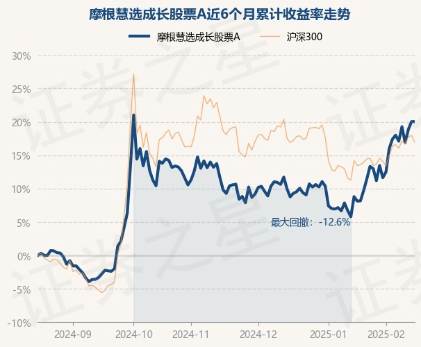 证券之星消息,2月18日,摩根慧选成长股票A最新单位净值为1.2528元,累计净值为1.2528元,较前一交易日上涨0.0%。历史数据显示该基金近1个月上涨10.3%,近3个月上涨10.74%,近6个月上涨21.01%,近1年上涨24.16%。该基金近6个月的累计收益率走势如下图: