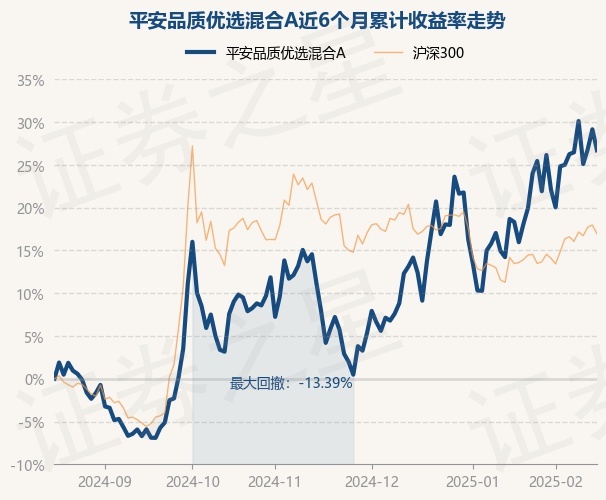 证券之星消息,2月18日,平安品质优选混合A最新单位净值为0.7497元,累计净值为0.7497元,较前一交易日下跌1.9%。历史数据显示该基金近1个月上涨7.3%,近3个月上涨21.61%,近6个月上涨26.7%,近1年上涨28.04%。该基金近6个月的累计收益率走势如下图:
