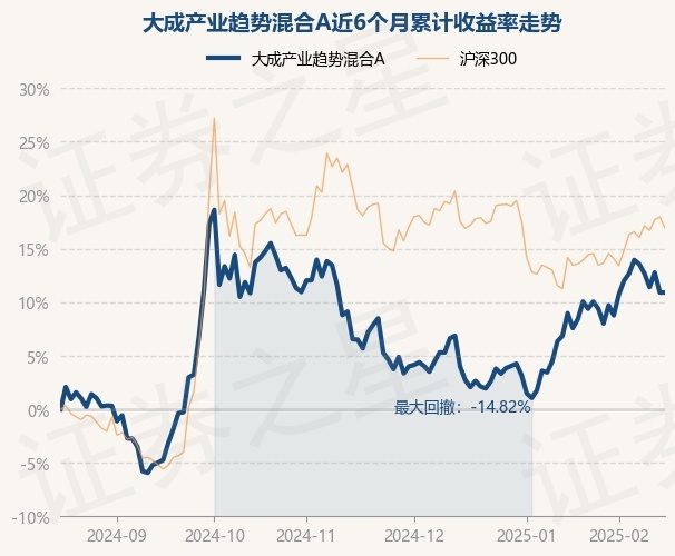证券之星消息,2月18日,大成产业趋势混合A最新单位净值为1.4409元,累计净值为1.4409元,较前一交易日上涨0.0%。历史数据显示该基金近1个月上涨0.58%,近3个月上涨4.74%,近6个月上涨10.69%,近1年上涨22.21%。该基金近6个月的累计收益率走势如下图: