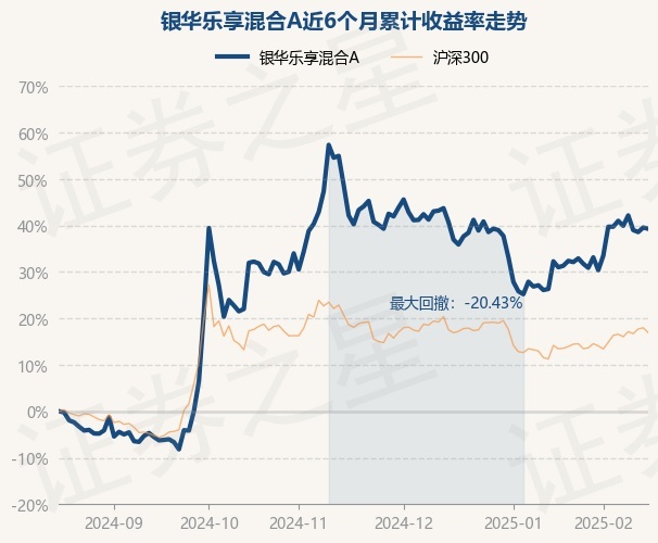 证券之星消息,2月18日,银华乐享混合A最新单位净值为0.6856元,累计净值为0.6856元,较前一交易日下跌0.19%。历史数据显示该基金近1个月上涨5.22%,近3个月下跌0.68%,近6个月上涨39.29%,近1年上涨38.45%。该基金近6个月的累计收益率走势如下图: