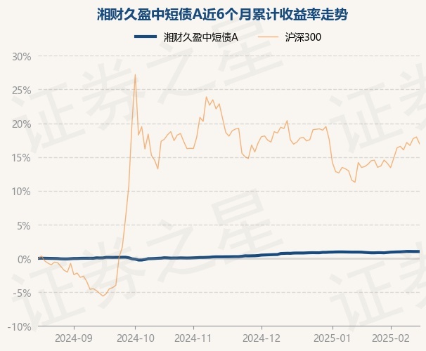 证券之星消息,2月18日,湘财久盈中短债A最新单位净值为1.0464元,累计净值为1.1391元,较前一交易日上涨0.0%。历史数据显示该基金近1个月上涨0.14%,近3个月上涨0.75%,近6个月上涨0.99%,近1年上涨2.55%。该基金近6个月的累计收益率走势如下图: