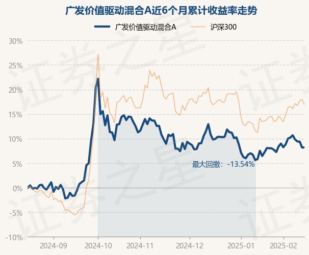 证券之星消息,2月18日,广发价值驱动混合A最新单位净值为0.8699元,累计净值为0.8699元,较前一交易日上涨0.0%。历史数据显示该基金近1个月下跌0.25%,近3个月下跌1.05%,近6个月上涨7.81%,近1年上涨2.55%。该基金近6个月的累计收益率走势如下图: