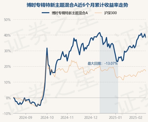 证券之星消息,2月18日,博时专精特新主题混合A最新单位净值为0.923元,累计净值为0.923元,较前一交易日下跌1.56%。历史数据显示该基金近1个月上涨5.86%,近3个月上涨8.66%,近6个月上涨38.44%,近1年上涨39.4%。该基金近6个月的累计收益率走势如下图: