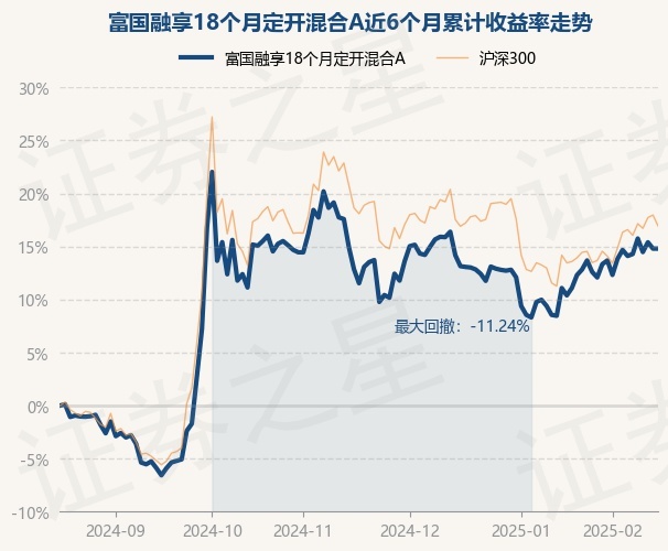 证券之星消息,2月18日,富国融享18个月定开混合A最新单位净值为1.0977元,累计净值为1.3677元,较前一交易日上涨0.0%。历史数据显示该基金近1个月上涨0.93%,近3个月上涨1.62%,近6个月上涨13.34%,近1年上涨16.38%。该基金近6个月的累计收益率走势如下图: