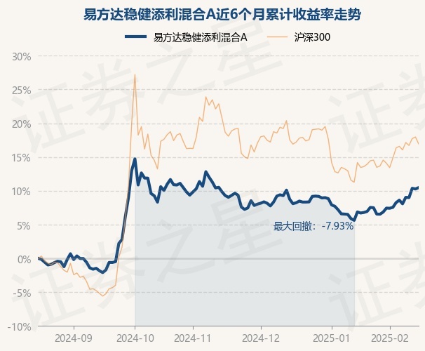 证券之星消息,2月18日,易方达稳健添利混合A最新单位净值为0.9759元,累计净值为0.9759元,较前一交易日上涨0.18%。历史数据显示该基金近1个月上涨3.3%,近3个月上涨1.32%,近6个月上涨10.47%,近1年上涨10.32%。该基金近6个月的累计收益率走势如下图: