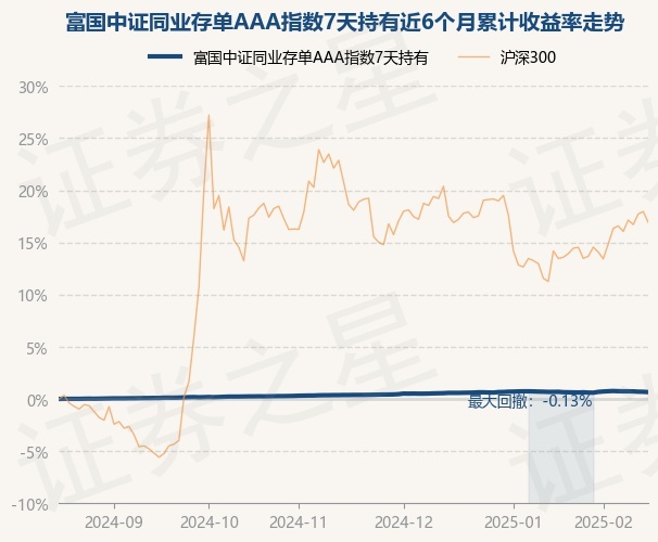 富国中证同业存单AAA指数7天持有为指数型-固收基金,根据最新一期基金季报显示,该基金资产配置:无股票类资产,债券占净值比117.91%,现金占净值比0.04%。