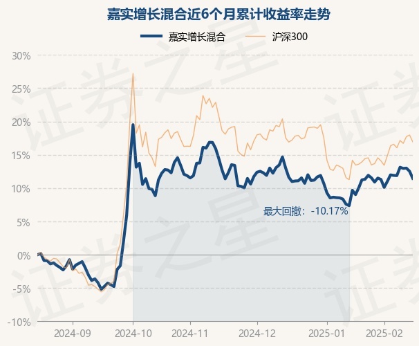 证券之星消息,2月18日,嘉实增长混合最新单位净值为15.2048元,累计净值为15.8858元,较前一交易日下跌0.95%。历史数据显示该基金近1个月上涨0.21%,近3个月上涨0.06%,近6个月上涨11.46%,近1年上涨6.72%。该基金近6个月的累计收益率走势如下图: