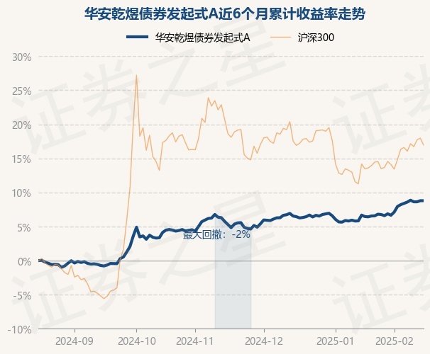 证券之星消息,2月18日,华安乾煜债券发起式A最新单位净值为1.1268元,累计净值为1.1268元,较前一交易日上涨0.0%。历史数据显示该基金近1个月上涨1.78%,近3个月上涨3.44%,近6个月上涨8.44%,近1年上涨9.71%。该基金近6个月的累计收益率走势如下图: