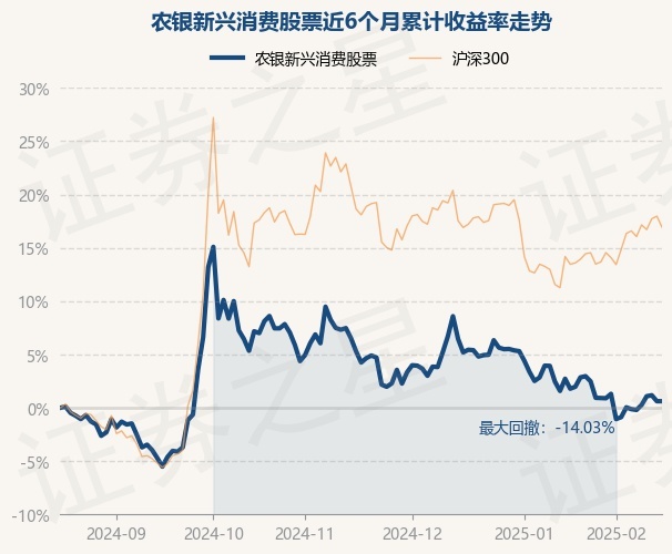 证券之星消息,2月18日,农银新兴消费股票最新单位净值为0.5356元,累计净值为0.5356元,较前一交易日上涨0.0%。历史数据显示该基金近1个月下跌3.01%,近3个月下跌4.31%,近6个月下跌0.24%,近1年下跌6.4%。该基金近6个月的累计收益率走势如下图: