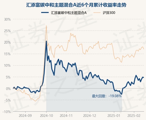 证券之星消息,2月18日,汇添富碳中和主题混合A最新单位净值为0.5053元,累计净值为0.5053元,较前一交易日下跌0.16%。历史数据显示该基金近1个月上涨3.74%,近3个月下跌0.96%,近6个月上涨4.68%,近1年上涨6.27%。该基金近6个月的累计收益率走势如下图: