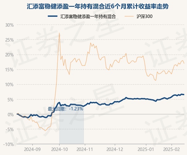 汇添富稳健添盈一年持有混合为混合型-偏债基金,根据最新一期基金季报显示,该基金资产配置:股票占净值比20.0%,债券占净值比97.21%,现金占净值比0.72%。基金十大重仓股如下: