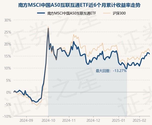 证券之星消息,2月18日,南方MSCI中国A50互联互通ETF最新单位净值为0.8157元,累计净值为0.8317元,较前一交易日下跌0.35%。历史数据显示该基金近1个月上涨4.2%,近3个月上涨0.62%,近6个月上涨15.79%,近1年上涨23.01%。该基金近6个月的累计收益率走势如下图: