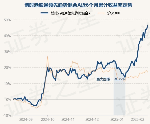 证券之星消息,2月18日,博时港股通领先趋势混合A最新单位净值为0.5551元,累计净值为0.5551元,较前一交易日上涨1.76%。历史数据显示该基金近1个月上涨22.11%,近3个月上涨29.51%,近6个月上涨46.46%,近1年上涨64.33%。该基金近6个月的累计收益率走势如下图: