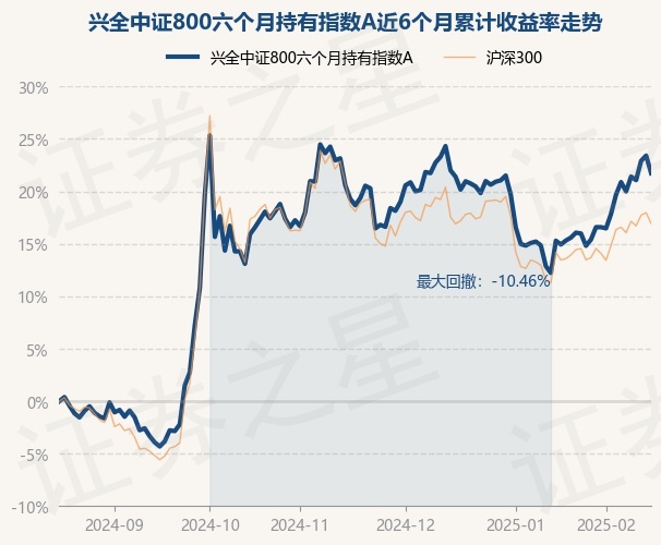 证券之星消息,2月18日,兴全中证800六个月持有指数A最新单位净值为1.0908元,累计净值为1.0908元,较前一交易日下跌1.36%。历史数据显示该基金近1个月上涨5.31%,近3个月上涨2.58%,近6个月上涨21.73%,近1年上涨20.65%。该基金近6个月的累计收益率走势如下图: