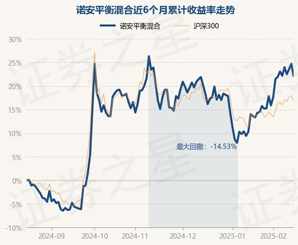 证券之星消息,2月18日,诺安平衡混合最新单位净值为1.2021元,累计净值为3.4621元,较前一交易日下跌2.01%。历史数据显示该基金近1个月上涨6.88%,近3个月上涨6.13%,近6个月上涨22.19%,近1年上涨26.9%。该基金近6个月的累计收益率走势如下图:
