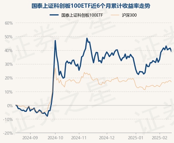 证券之星消息,2月18日,国泰上证科创板100ETF最新单位净值为0.9598元,累计净值为0.9598元,较前一交易日下跌1.6%。历史数据显示该基金近1个月上涨6.38%,近3个月上涨6.4%,近6个月上涨39.26%,近1年上涨20.94%。该基金近6个月的累计收益率走势如下图: