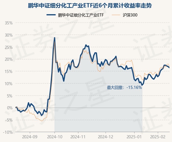 证券之星消息,2月18日,鹏华中证细分化工产业ETF最新单位净值为0.5864元,累计净值为0.5864元,较前一交易日下跌0.37%。历史数据显示该基金近1个月上涨2.41%,近3个月下跌2.12%,近6个月上涨16.42%,近1年上涨5.32%。该基金近6个月的累计收益率走势如下图: