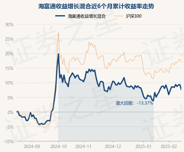 证券之星消息,2月18日,海富通收益增长混合最新单位净值为2.097元,累计净值为3.757元,较前一交易日下跌1.5%。历史数据显示该基金近1个月上涨0.87%,近3个月下跌0.94%,近6个月上涨7.65%,近1年上涨10.89%。该基金近6个月的累计收益率走势如下图: