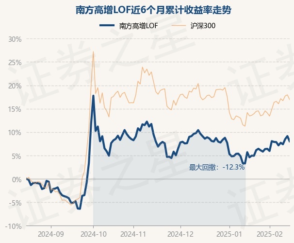 证券之星消息,2月18日,南方高增LOF最新单位净值为1.2947元,累计净值为4.4677元,较前一交易日下跌1.01%。历史数据显示该基金近1个月上涨2.94%,近3个月上涨1.06%,近6个月上涨8.02%,近1年上涨9.28%。该基金近6个月的累计收益率走势如下图: