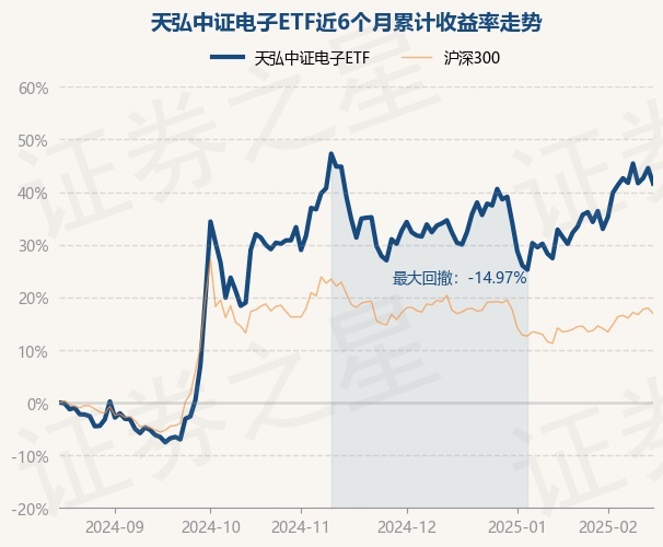 证券之星消息,2月18日,天弘中证电子ETF最新单位净值为1.1775元,累计净值为1.1775元,较前一交易日下跌2.03%。历史数据显示该基金近1个月上涨7.07%,近3个月上涨7.83%,近6个月上涨41.63%,近1年上涨49.9%。该基金近6个月的累计收益率走势如下图: