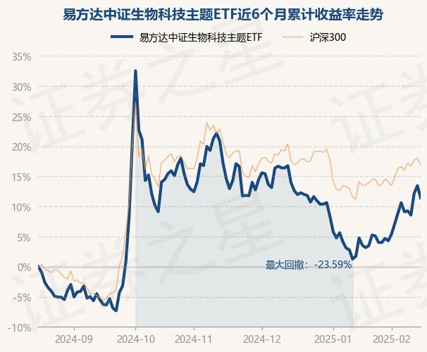 证券之星消息,2月18日,易方达中证生物科技主题ETF最新单位净值为0.4516元,累计净值为0.4516元,较前一交易日下跌1.78%。历史数据显示该基金近1个月上涨7.68%,近3个月下跌1.35%,近6个月上涨11.42%,近1年下跌2.42%。该基金近6个月的累计收益率走势如下图: