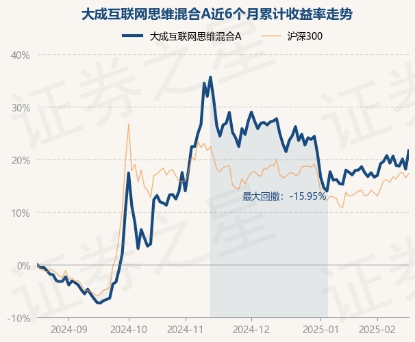 证券之星消息,2月19日,大成互联网思维混合A最新单位净值为1.7336元,累计净值为1.7336元,较前一交易日上涨2.96%。历史数据显示该基金近1个月上涨3.16%,近3个月下跌3.85%,近6个月上涨21.67%,近1年上涨18.82%。该基金近6个月的累计收益率走势如下图:
